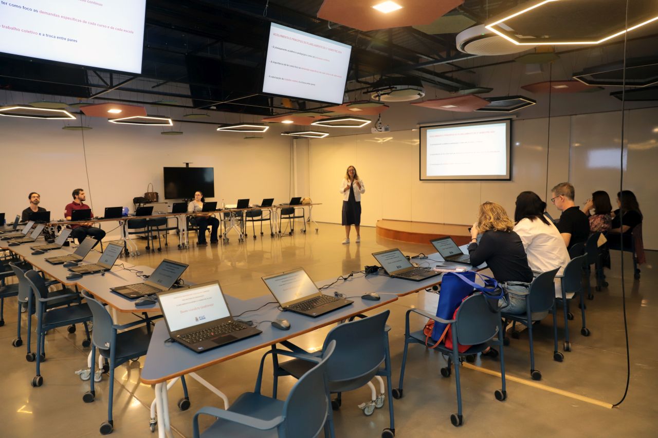 Laboratórios e espaços que promovem prática e inovação.